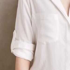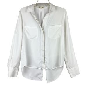 Anthropologie Cloth & Stone White Button Down Hi-Lo Slit Back Blouse Size S