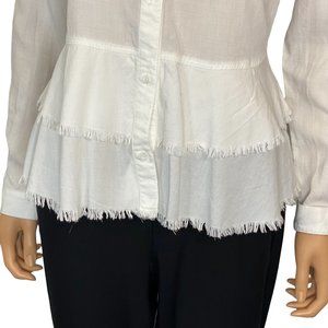 Anthropologie Cloth & Stone White Tiered Frayed Peplum Blouse Tunic Small