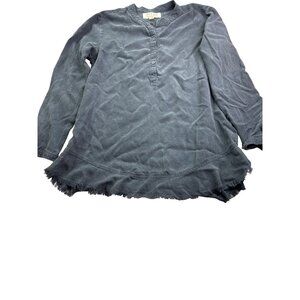 Anthropologie Cloth & Stone Womens Chambray Long Sleeve Tunic Top Size M Blue Raw Hem Frayed No Belt