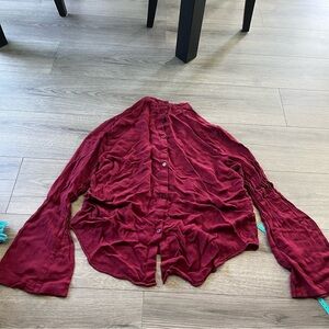 Cloth & Stone Womens Maroon Wine Colored Flare Bell Sleeve Long Size Medium. Keyhole Cutout. Button. See pictures for measurements