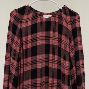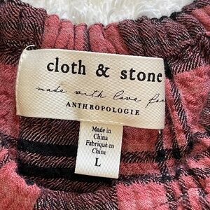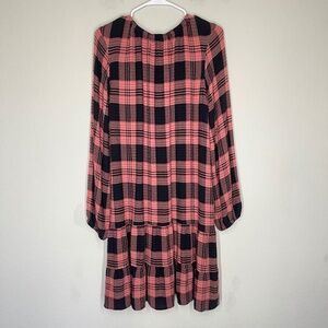 Anthropologie Cloth & Stone Women's Mini Dress Size L Plaid Pink Boho Peasant