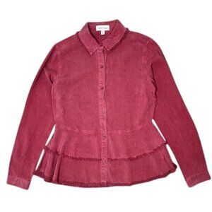 Anthropologie Cloth & Stone Womens Rose Button-Up Peplum Shirt W/Frayed Hem XS