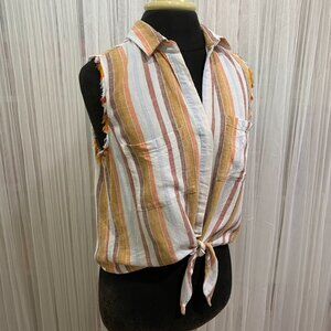 Anthropologie Cloth & Stone Women's Small Tie Front Striped Linen Button Down