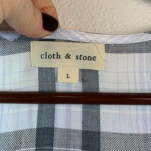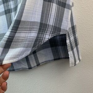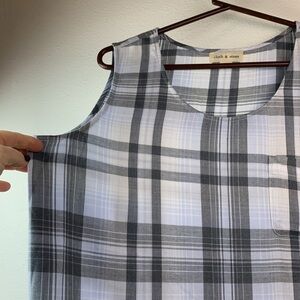 Anthropologie Cloth & Stone super soft lightweight gray blue plaid sleeveless top. Straight back hem with front curved hem.