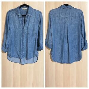 Anthropologie Cloth and Stone Leopard Denim Chambray Button Down Top