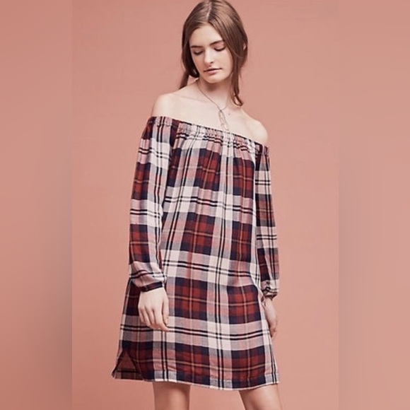 Anthropologie Cloth and Stone Off the Shoulder Plaid Dress