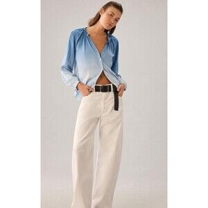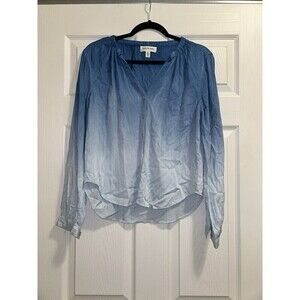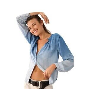 Anthropologie Cloth and Stone Top Shirred Button Down Blue Ombré XS