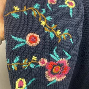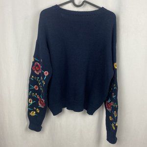 Anthropologie Cloth by RD Style Floral Embroidery Navy Blue Sweater - Size M