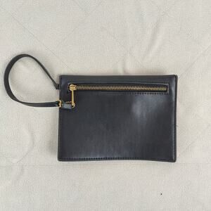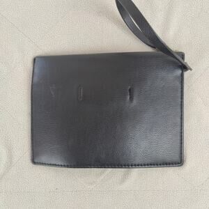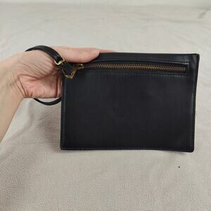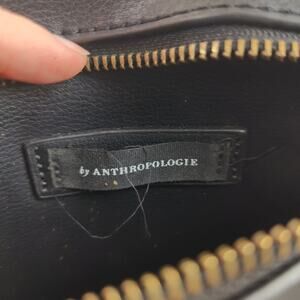 Anthropologie Clutch Zip Closure Small Black Leather Bag Wristlet Bohemian