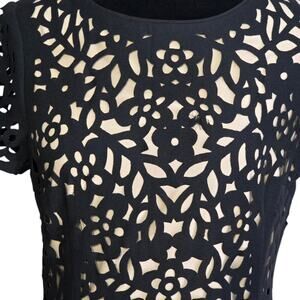 Anthropologie Maeve Black Floral Basalt Laser Cut Eyelet Cutout Cocktail Dress