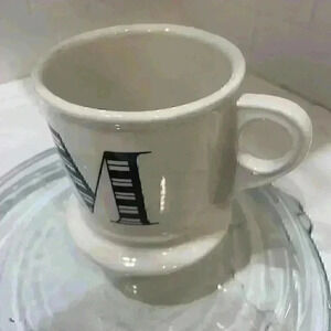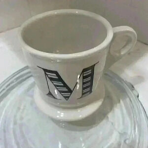 Anthropologie Coffee Mug Monogram Letter M Black White Shaving Style Cup NEW