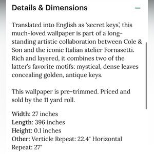 Anthropologie Cole & Son Chiavi Segrete Wallpaper NEW