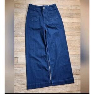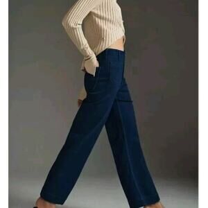 Anthropologie Colette Crop Pants Wide Leg Maeve Dark BLUE Denim Navy Sz 30