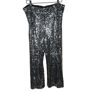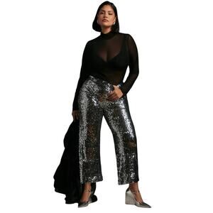 Anthropologie Colette Cropped Wide Leg Sequin Pants Black Silver Maeve Size 33