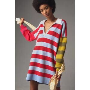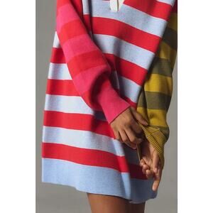 Anthropologie Color Block Mini Sweater Dress - S - Red