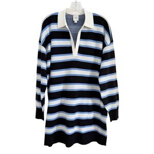 Anthropologie Color Block Mini Sweater Dress Tunic Womens Small OVERSIZED V Neck