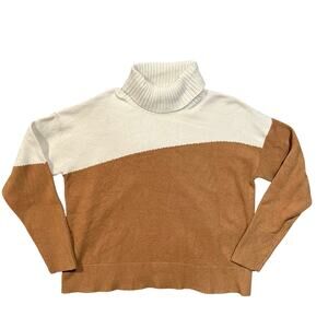 Anthropologie Color Block Turtleneck Sweater Brown Cream Casual Cute Womens XL