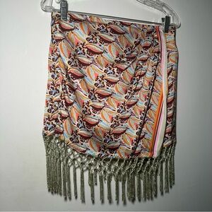 Anthropologie Colorful Tropical Beach Fringe Resortwear Mini Skirt Size M