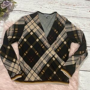 Conditions Apply which is sold by Anthropologie brown colored plaid wrap suzette top. This top is in great used condition