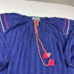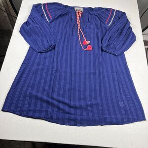 Anthropologie Conditions Apply Dress Small Blue Peasant Boho Tassel Sleeve Tunic