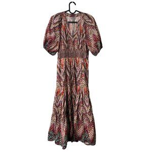 Anthropologie Conditions Apply Multicolor Geometric Puff Sleeve Midi Dress 2