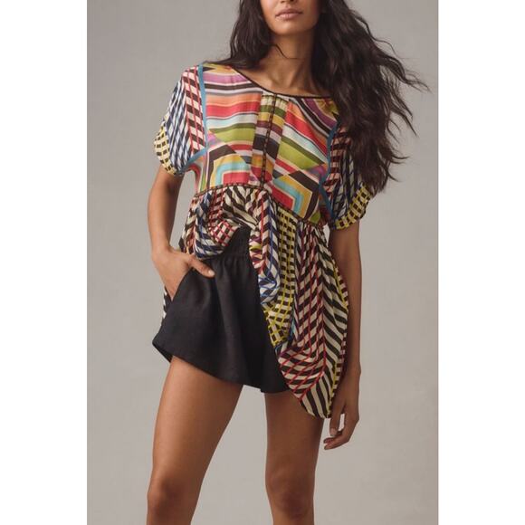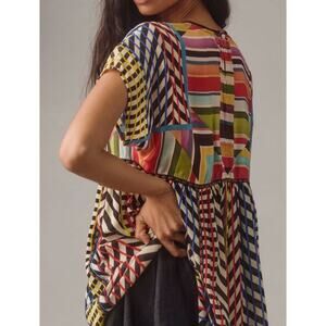 Anthropologie Conditions Apply Patchwork Stripe Babydoll Tunic XL Rainbow Artsy