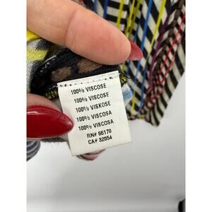 Very good pre-owned condition. A few small snags in the fabric—please see last photos for close-up details. Due to the busy, multicolor pattern, the snags are difficult to notice when worn.