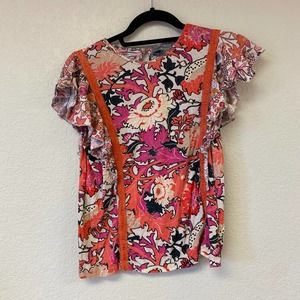 Anthropologie Conditions Apply Zofana Floral Flutter Sleeve Top Pink Medium