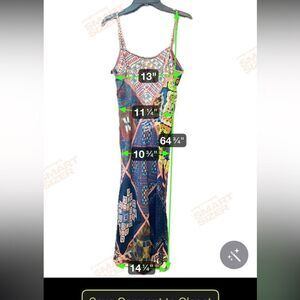 Embrace vibrant style with this multicolor patchwork vibe slinky slip dress with skinny straps. Featuring a unique design, it's perfect for any occasion.