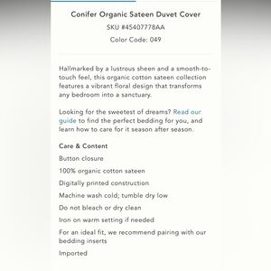 Anthropologie Conifer Organic Sateen Duvet Cover Size Queen NWT