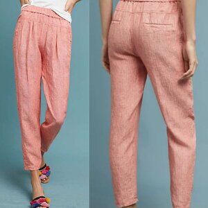 Anthropologie Coral Pink White Striped Linen Pull-On Pants 20242