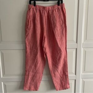 Anthropologie Coral Pink/White Striped Linen Pull-On Pants Size Medium