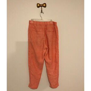 Anthropologie Coral/Pink Striped Linen High-Rise Cropped Pants - Size Small