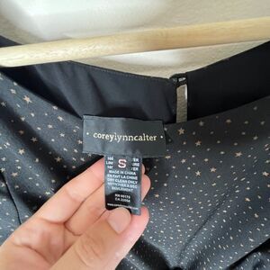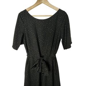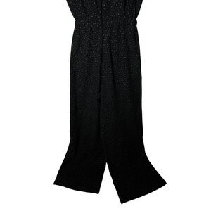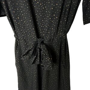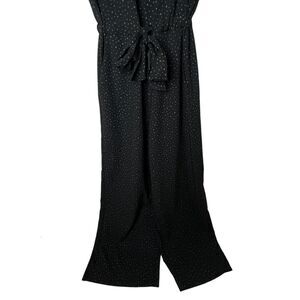 Corey Lynn Calter Black with Gold Star Cosmos Print Jumpsuit with Wide Legs, Short Bell Sleeves, Tie Waist, Keyhole Closure, Zip Back, 100% Polyester