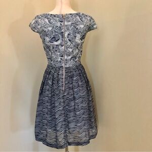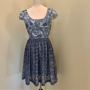 Anthropologie. Corey Lynn Calter. Fit & Flare Dress. Blue & Cream. Size 4