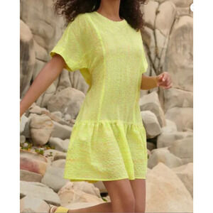 Anthropologie Corey Lynn Calter Mariah Textured Mini Dress Yellow Beige Size XS Short Sleeves