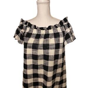 Anthropologie Corey Lynn Calter Mini Dress Gingham Off Shoulder Black White XS