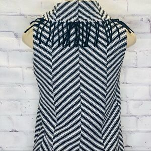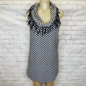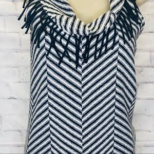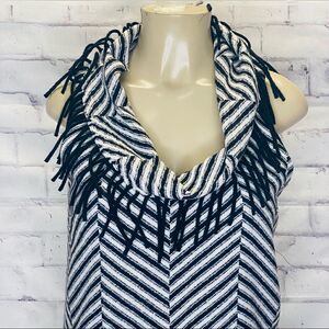Anthropologie Corey Lynn Calter stripe wool dress with a cowl neck and fringe