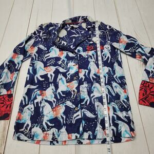 Lovely Anthropologie Cornelia O'Donovan "Sweet dreams" flannel pajama shirt! Full button front in a soft brushed fabric with allover horse design. Gently worn and in great condition, size XS.