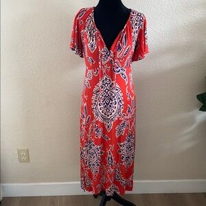 Anthropologie Correia Flutter Sleeve Toe Nexk Paisley Maxi Dress 0139