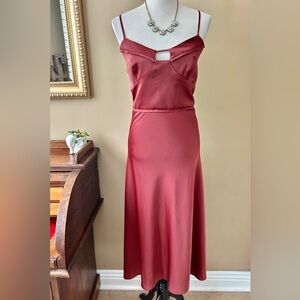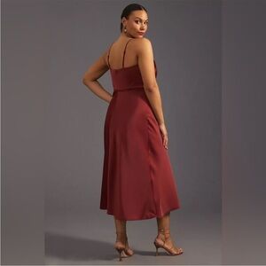 Perfect for a wedding or formal event! Add this brown satin corset midi slip dress to your Anthro collection.