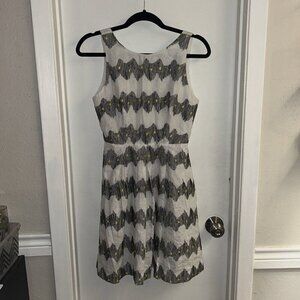 Linen blend chevon print, embroidered summer dress, Super Cute still in great condition
