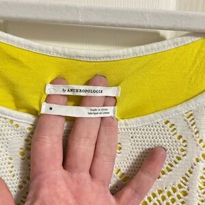 Crafted for the modern wardrobe, the Cosette Lined Tank Top is a testament to Anthropologie's commitment to chic, comfortable wear. This medium-sized, white tank features a delicate cutout overlay that adds a touch of sophistication and breathability to the yellow lined design. Made from a soft cotton blend, it's a versatile piece that promises to be a staple in any women's clothing collection. The sleeveless silhouette makes it an ideal choice for warmer days or layering under a cardigan. With its regular fit, the tank ensures ease of movement while maintaining a sleek profile. Whether paired with jeans for a casual outing or dressed up with a skirt, this top is sure to elevate your style with its timeless elegance and contemporary edge. It is pre-owned, but in excellent condition!