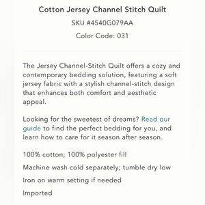Anthropologie Cotton Jersey Channel Stitch Quilt Size King NWT
