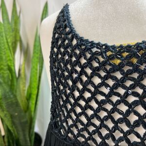 Anthropologie Cotton Bohemian Style LOVE SAM Black Dress Beaded Crochet on top