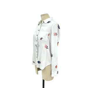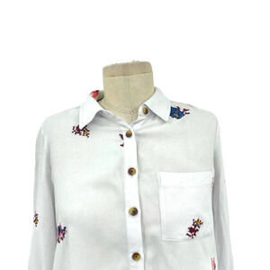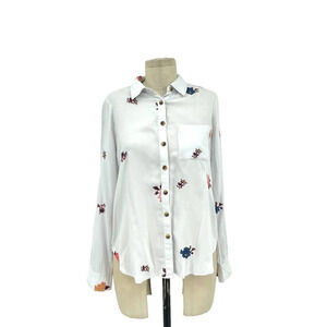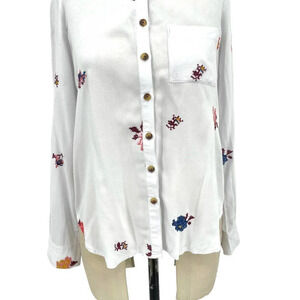 Anthropologie County Fair Top Blouse Embroidered Floral Button Down White Size 0