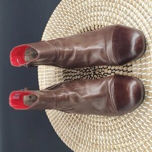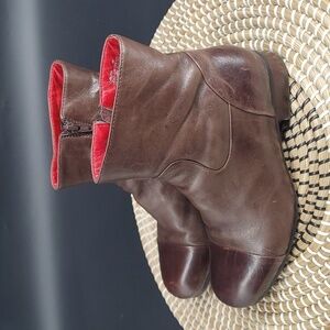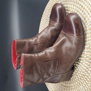 Anthropologie Coupleof Soft Leather Faux Fur Lined Moto Boots EU 38 US 7.5 Brown