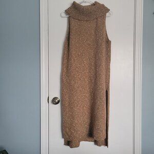 Anthropologie Cowl Neck Sweater Dress Size Large Sleeveless Heathered Brown