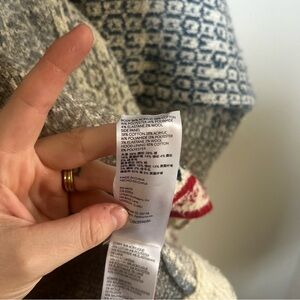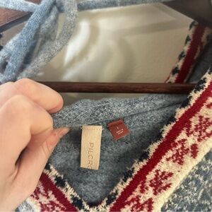 Stay warm and stylish with this cozy blue and white sweater. Perfect for any casual outing.