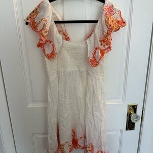 Anthropologie Cream Coverup with Orange Embroidery
